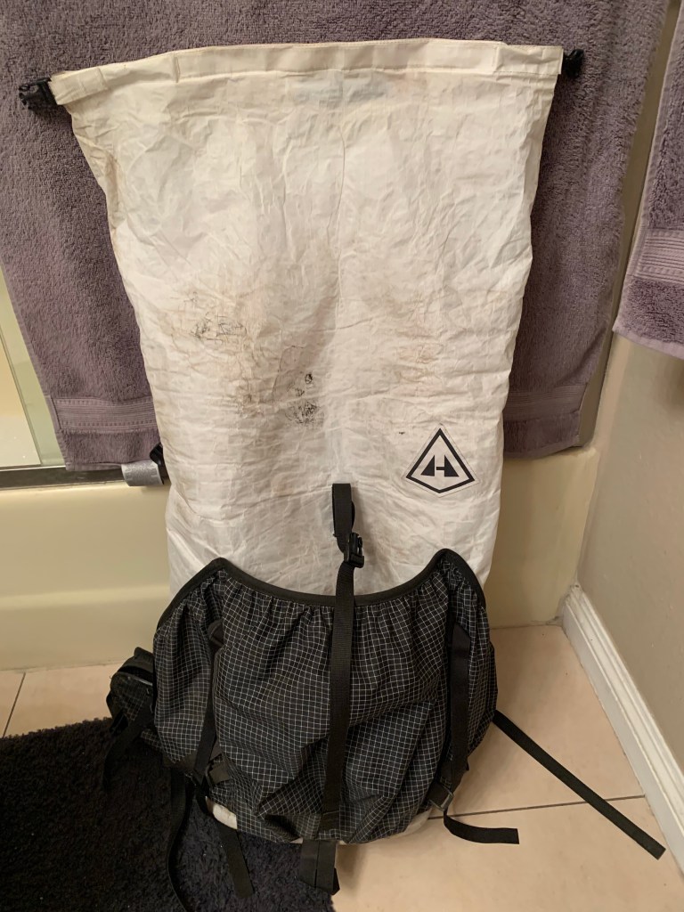 After two years of use and then hiking the High Sierra Trail (the fresh burn zone did not help the color of my backpack), I recently decided that it was finally time to clean the ol’ bag.