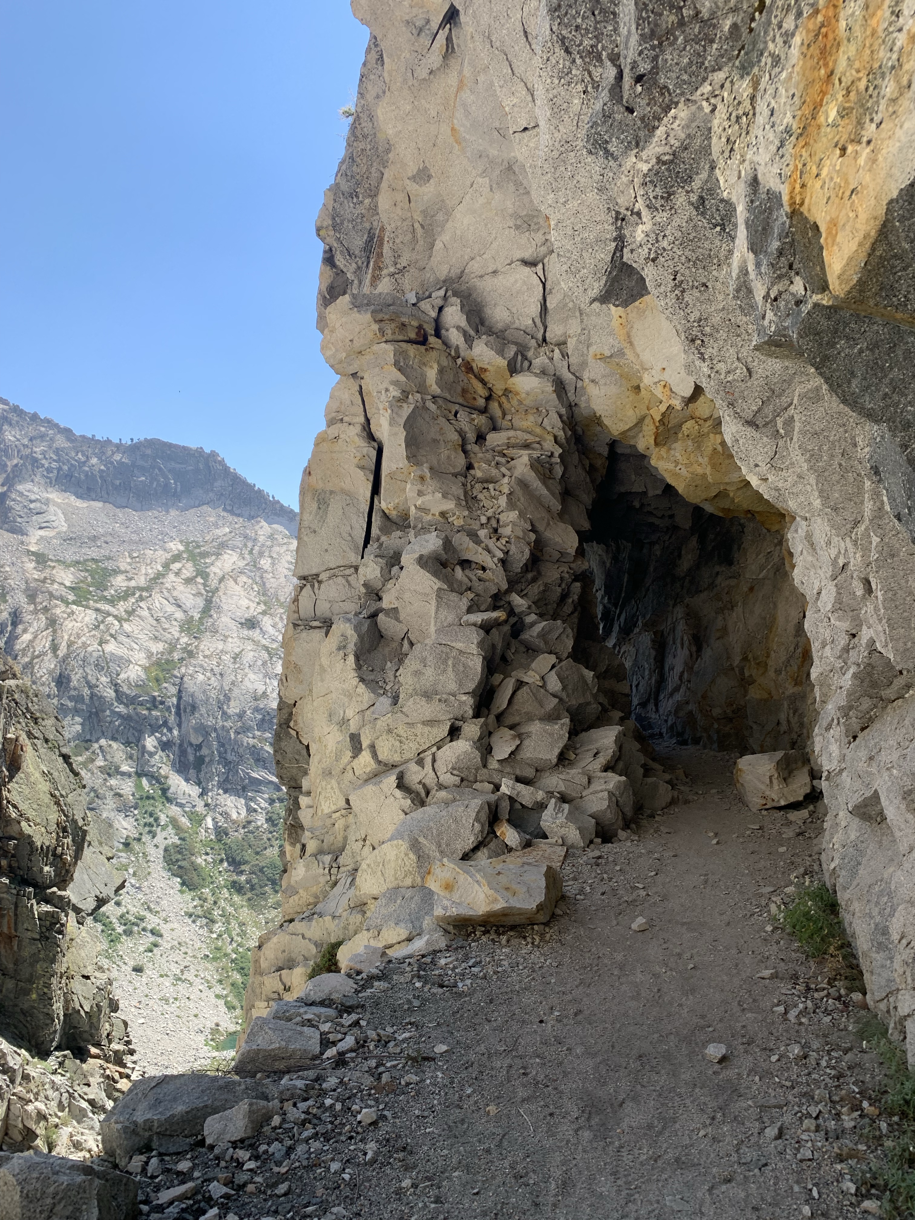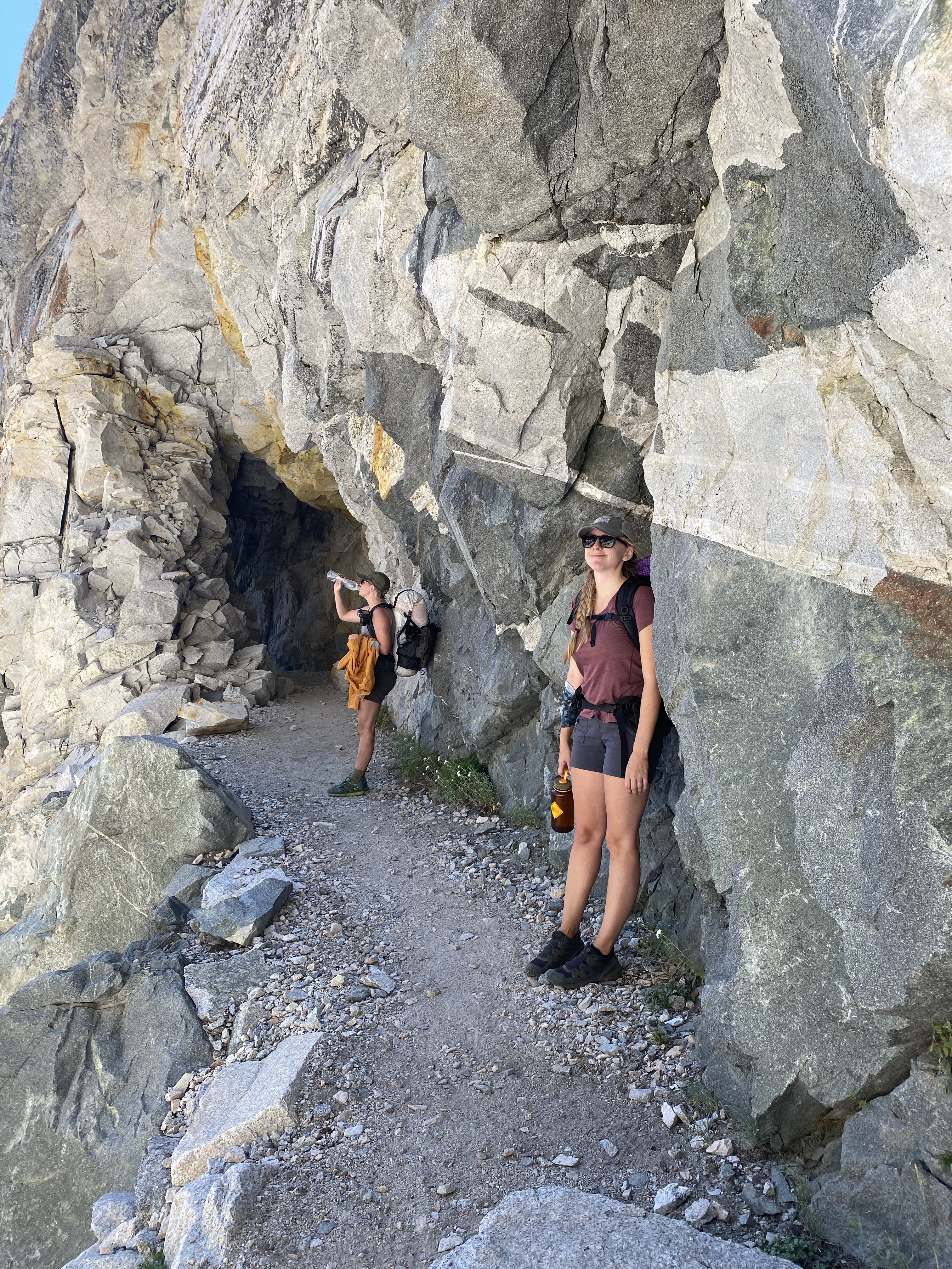 About 2/3 up, we went through the Hamilton Gorge Tunnel, which was nice and perked me up a bit. The tunnel was blasted in the rock after an avalanche in 1937 took out a suspension bridge spanning the gorge. The tunnel (and trail itself) is an extremely impressive feat, and it is cool to see the remnants of the old bridge alongside the trail!