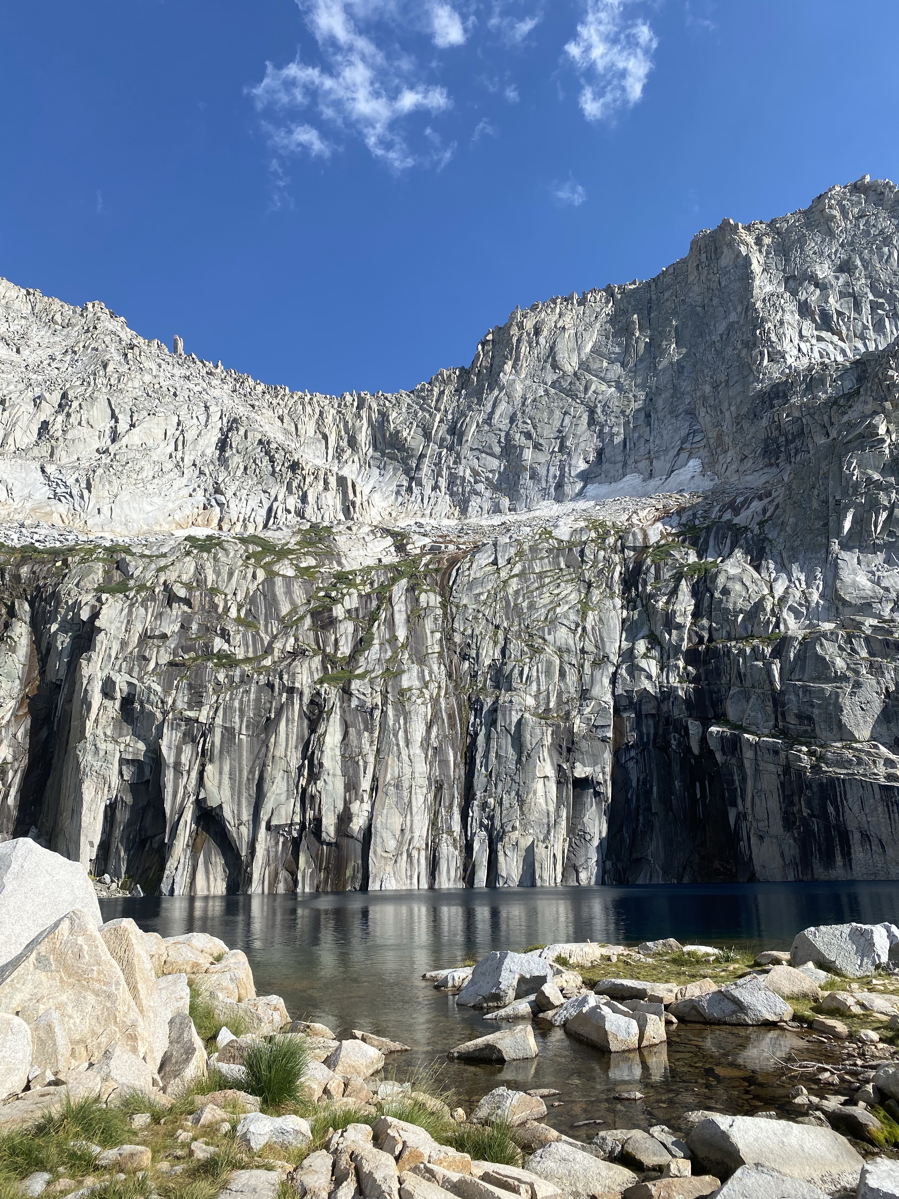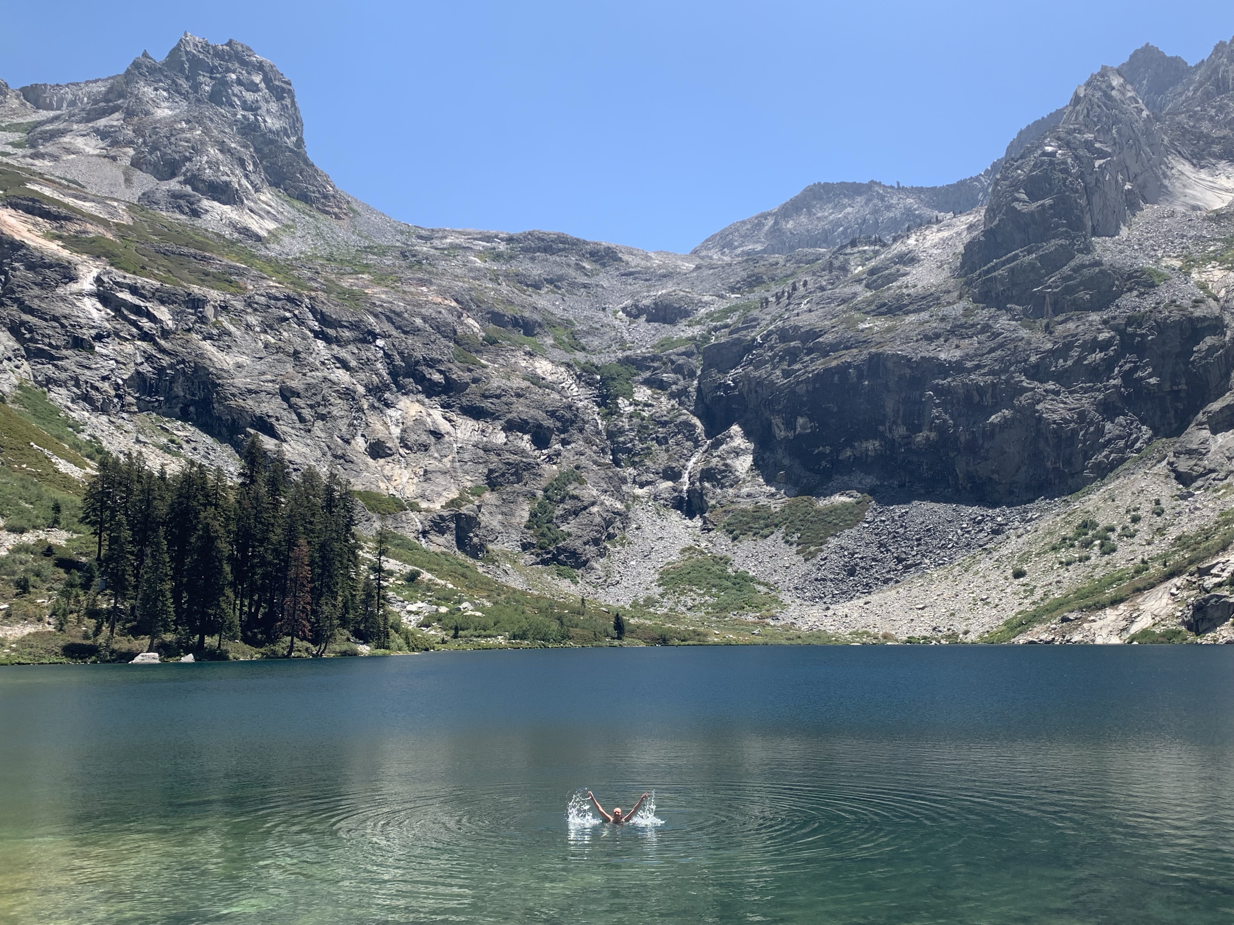 Hamilton Lake is SO STUNNING. It was huge, very dark blue, with large granite slabs to the west (perfect for sunbathing and swimming), and granite walls to the east with waterfalls cascading down. We were all super hot from our climb, so we all immediately jumped into the water! We swam and floated for about 20 minutes before shivering our way onto the granite rocks and laying down on the hot granite.