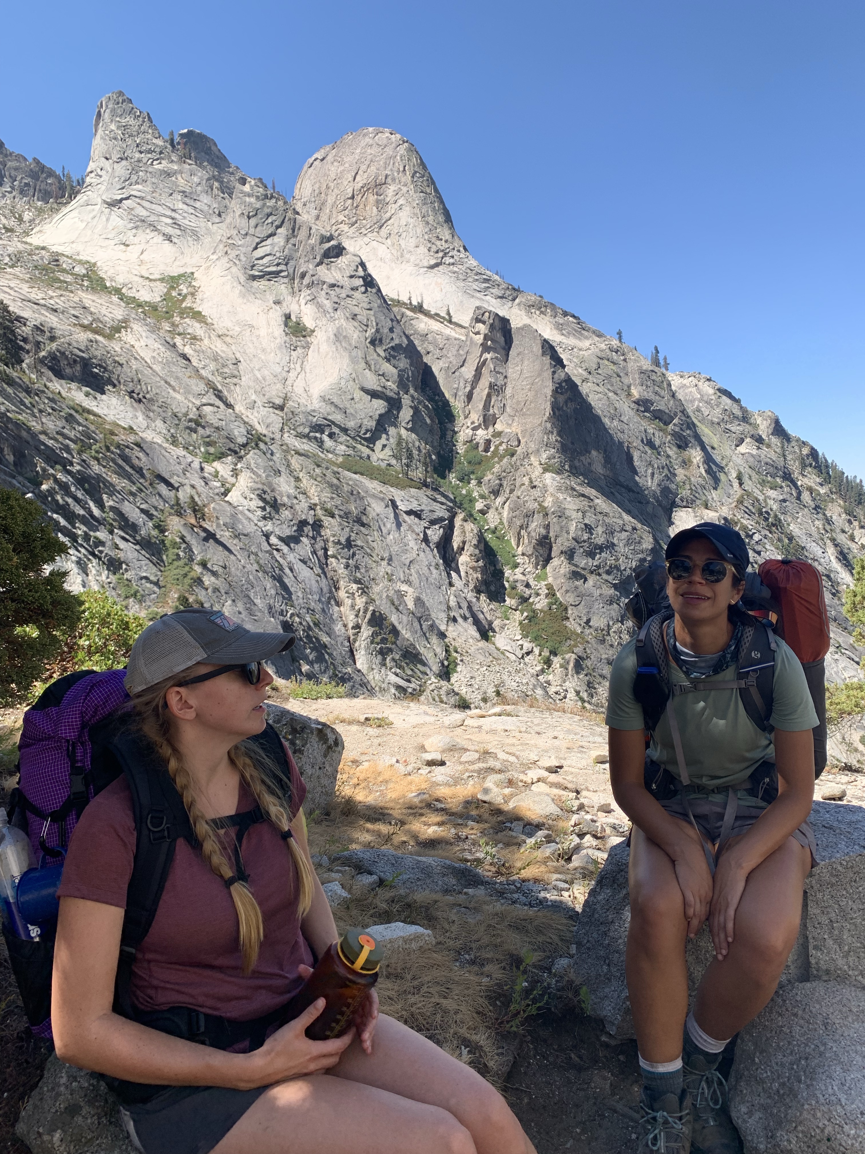 We had a pretty lazy start, choking down oatmeal, drinking coffee, and enjoying a morning chat with a nosey deer in the campground. We finally left around 8:30am and began our day with an insane (albeit short) hill back up to the High Sierra Trail from the Bearpaw backpacker’s camp (if you know, you know). Quite a warm-up to the day.
