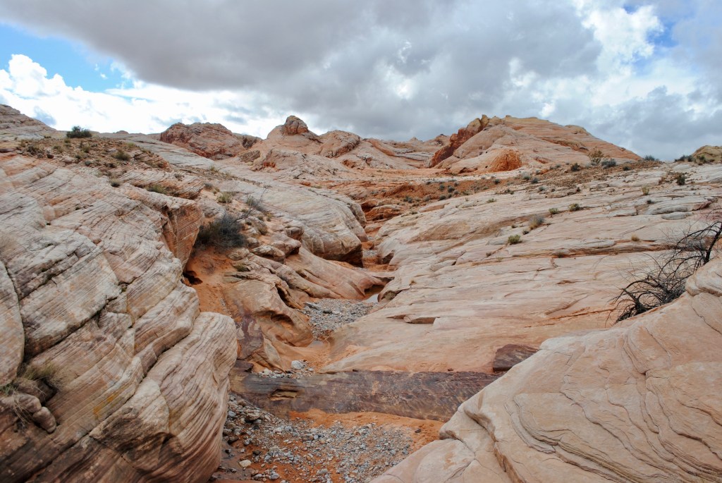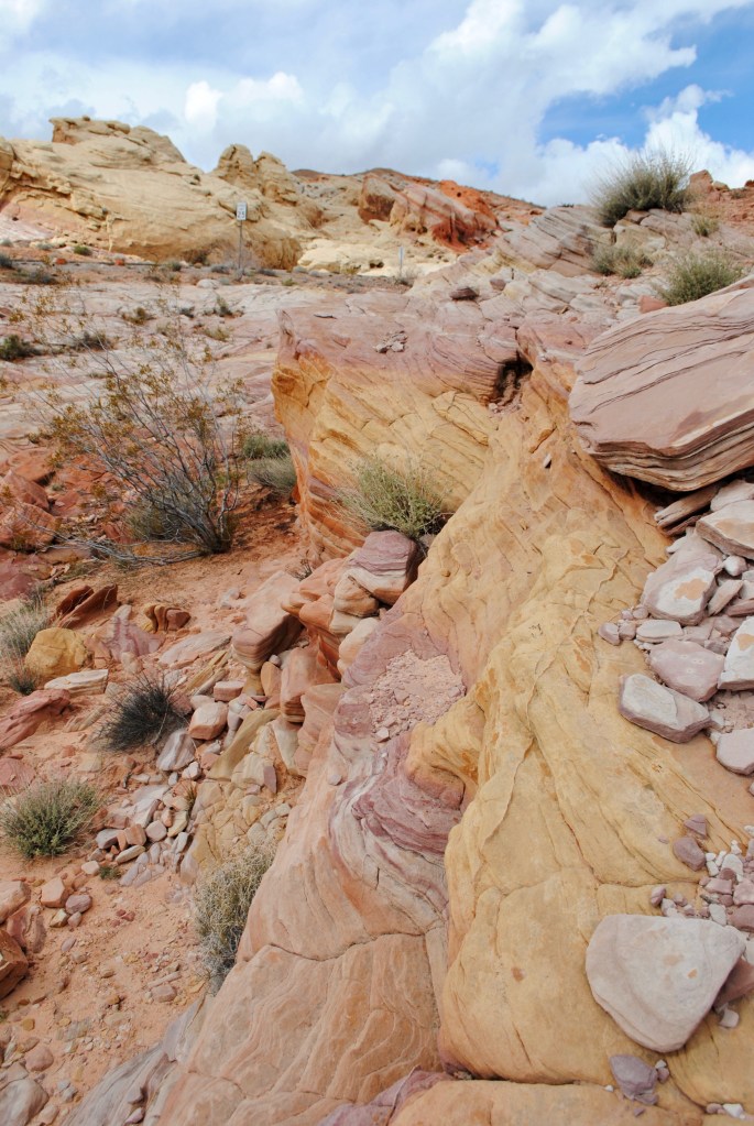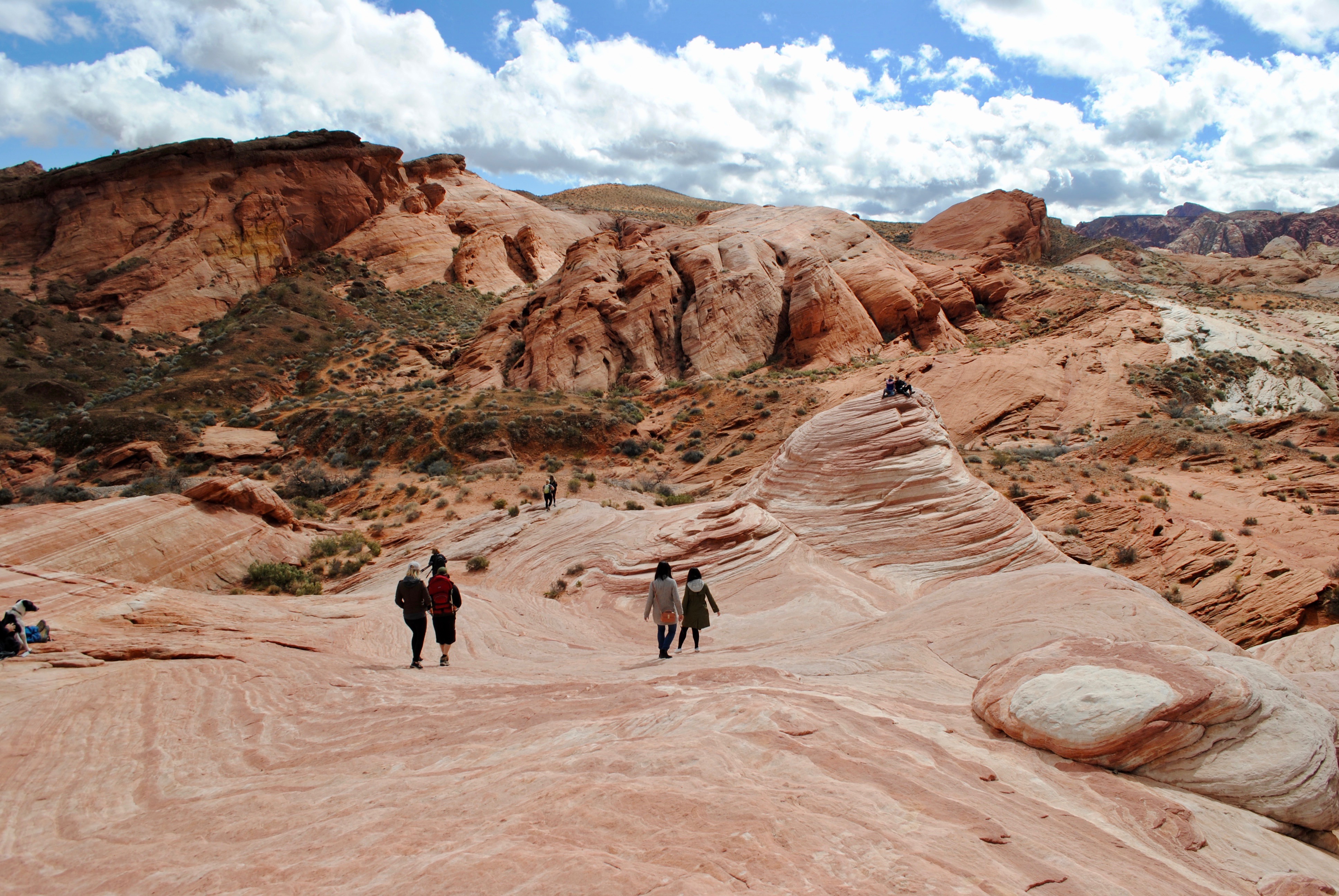 Soon enough, you’ll hit the beginning of the wide-sloping orange and cream “fields” of rock that will eventually lead to the Fire Wave.