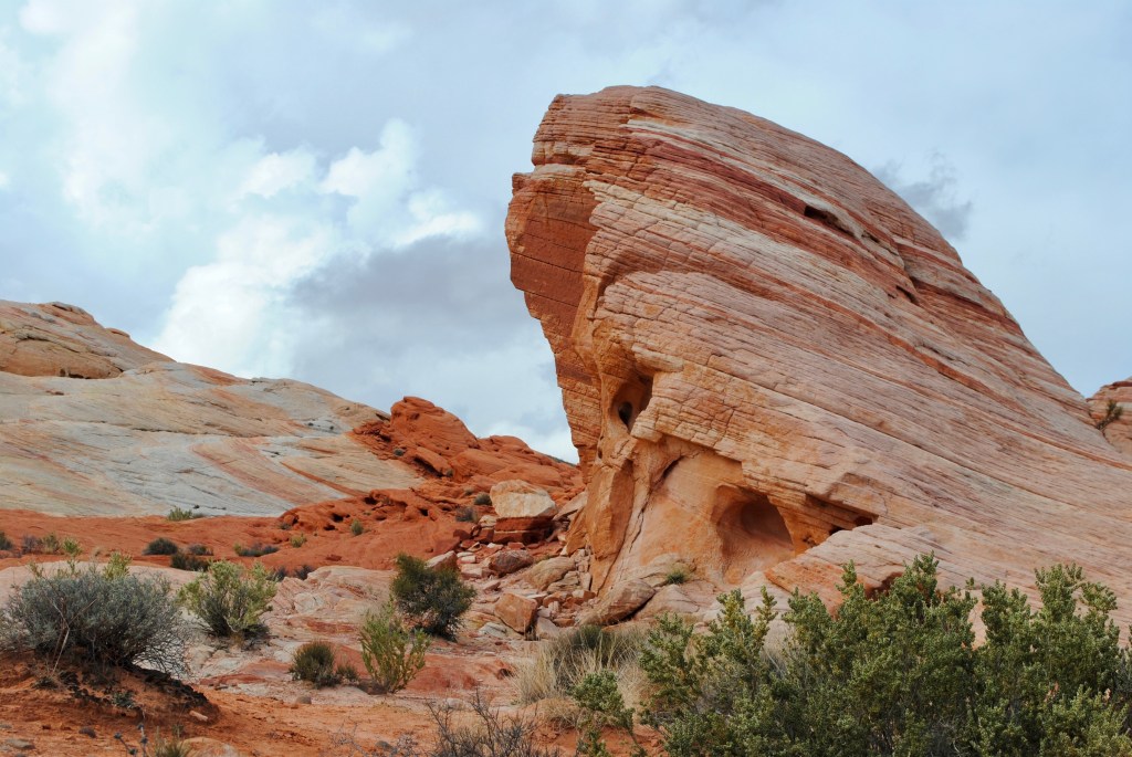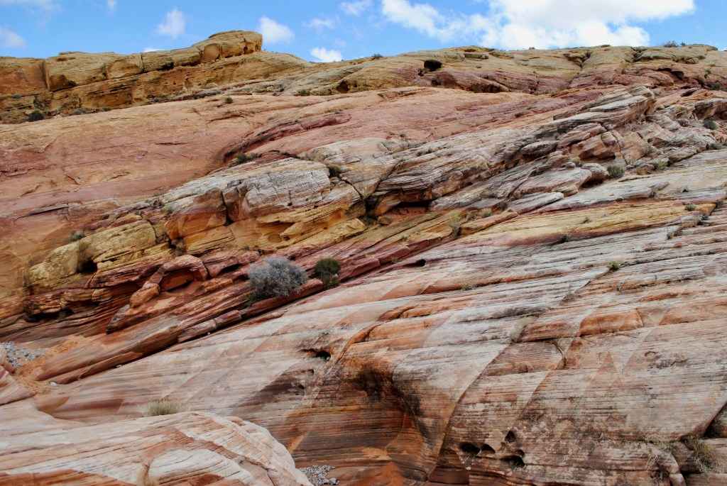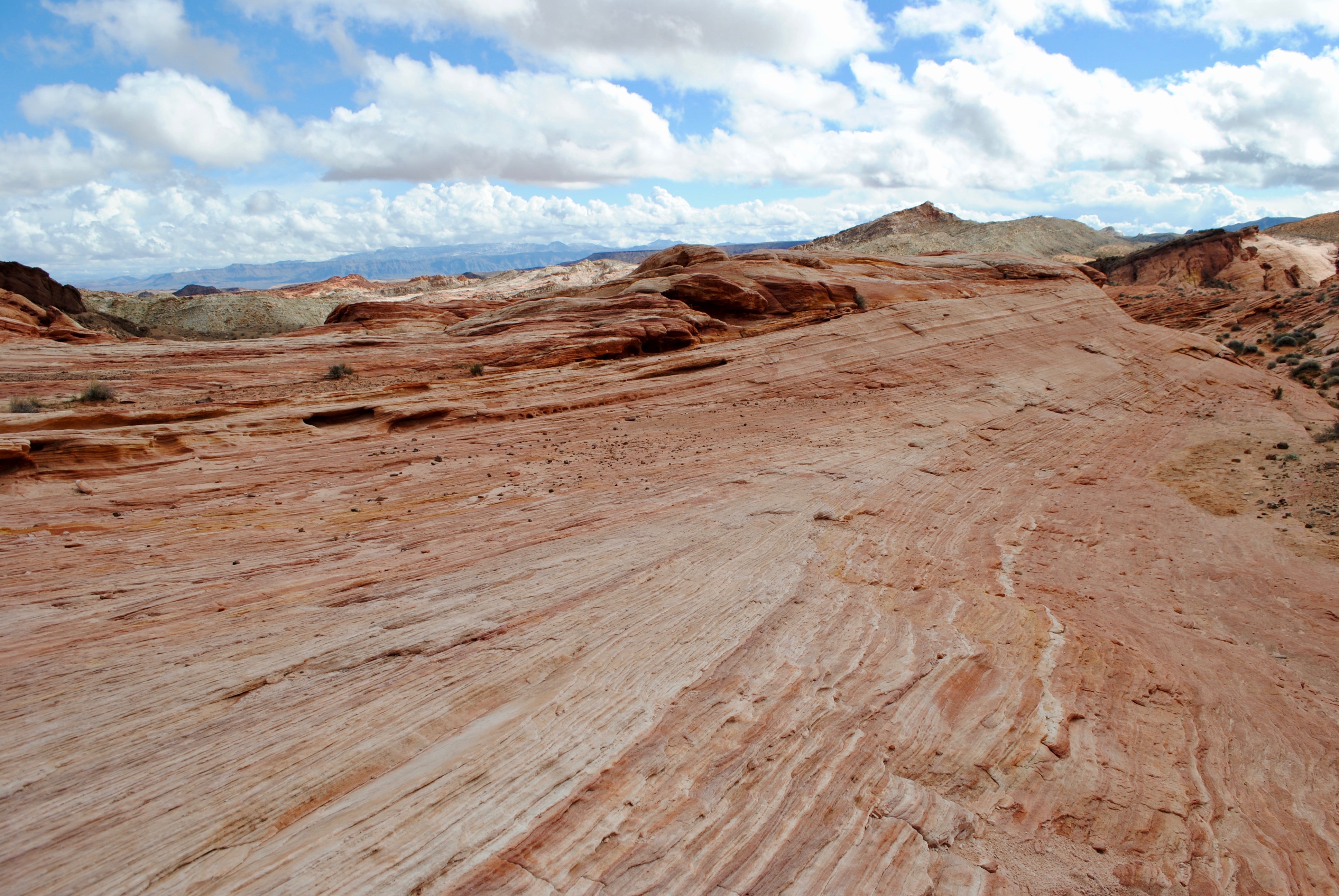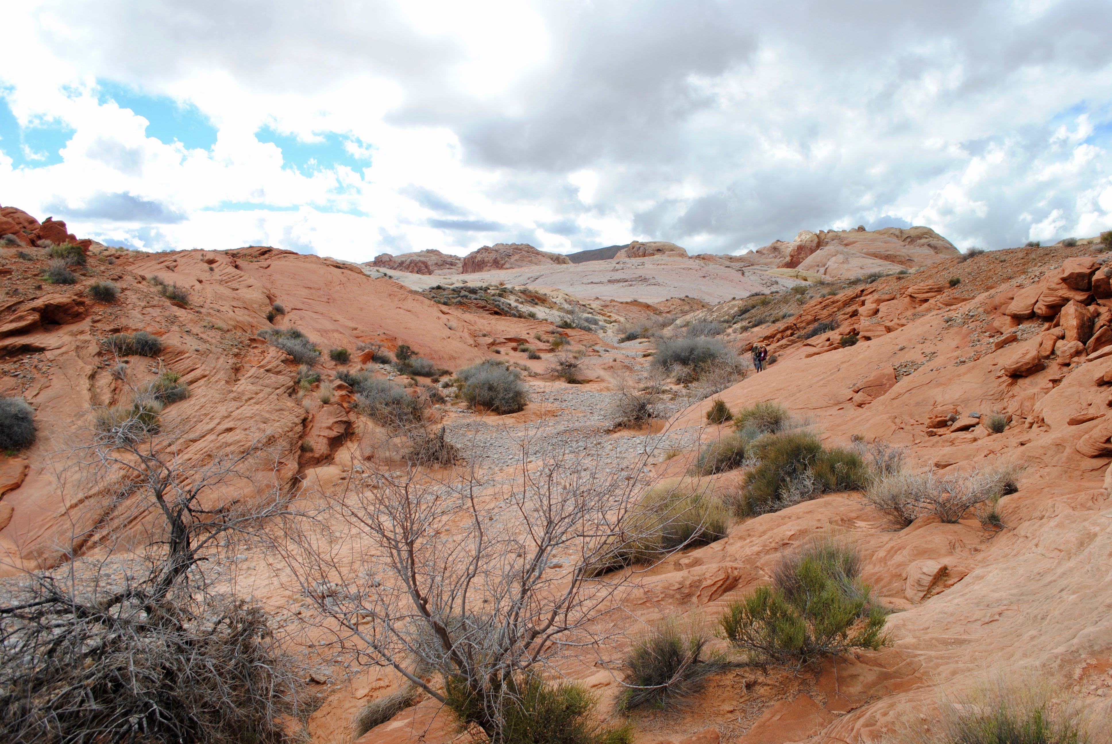 Soon enough, you’ll hit the beginning of the wide-sloping orange and cream “fields” of rock that will eventually lead to the Fire Wave.