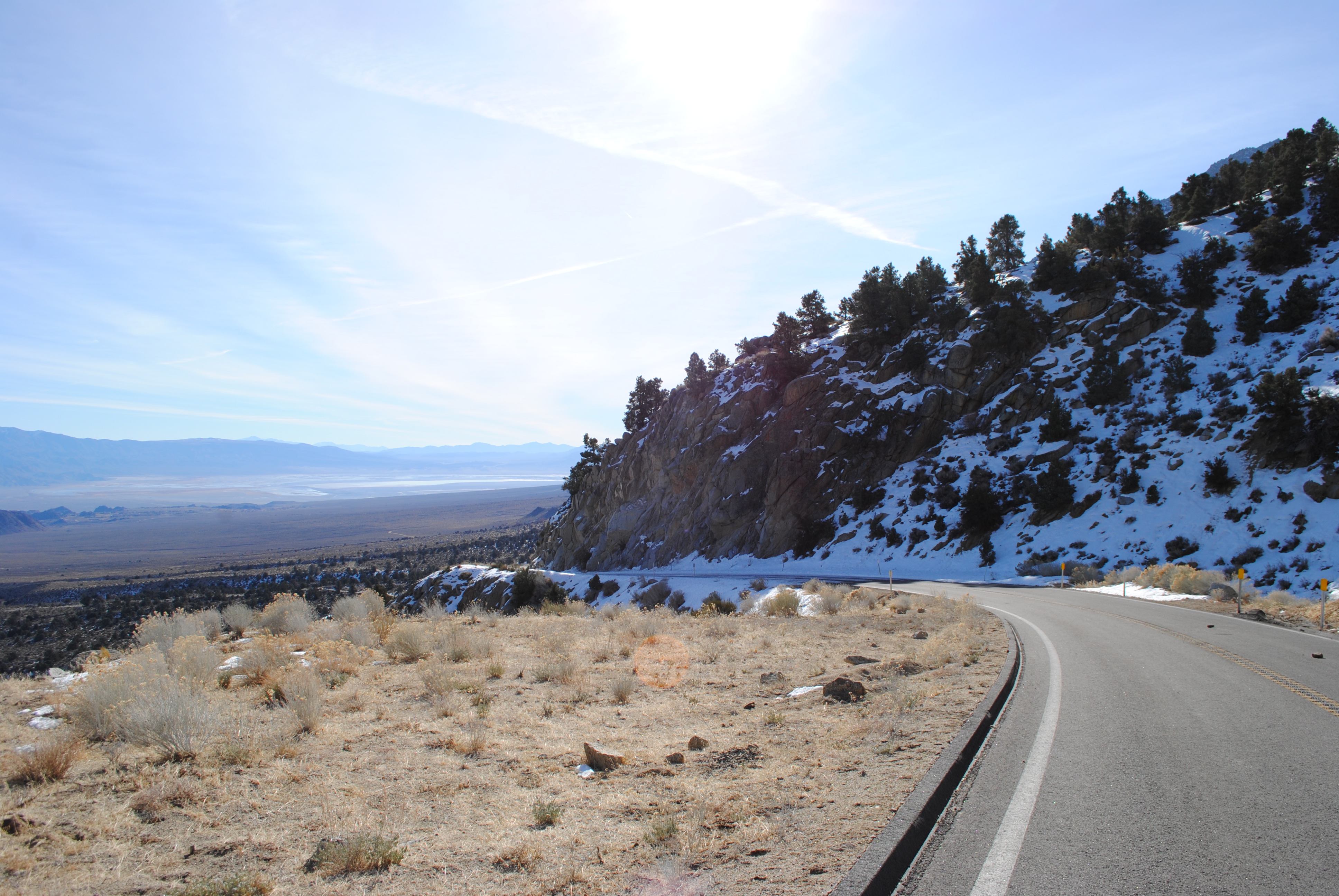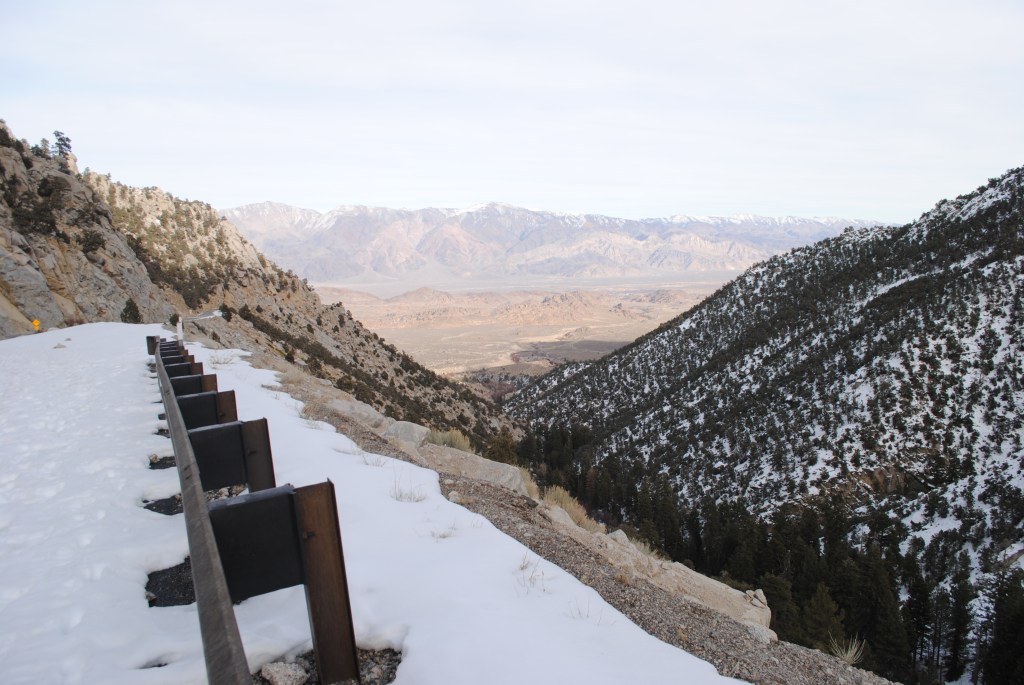For those of you who aren’t familiar with Whitney Portal Road, immediately after the road closure are two long switchbacks traversing up the mountain, parallel to the Owens Valley, before the road straightens out and follows Lone Pine Creek up towards Whitney. The first switchback gave us an amazing view of the Owens Valley, for as far as the eye could see.