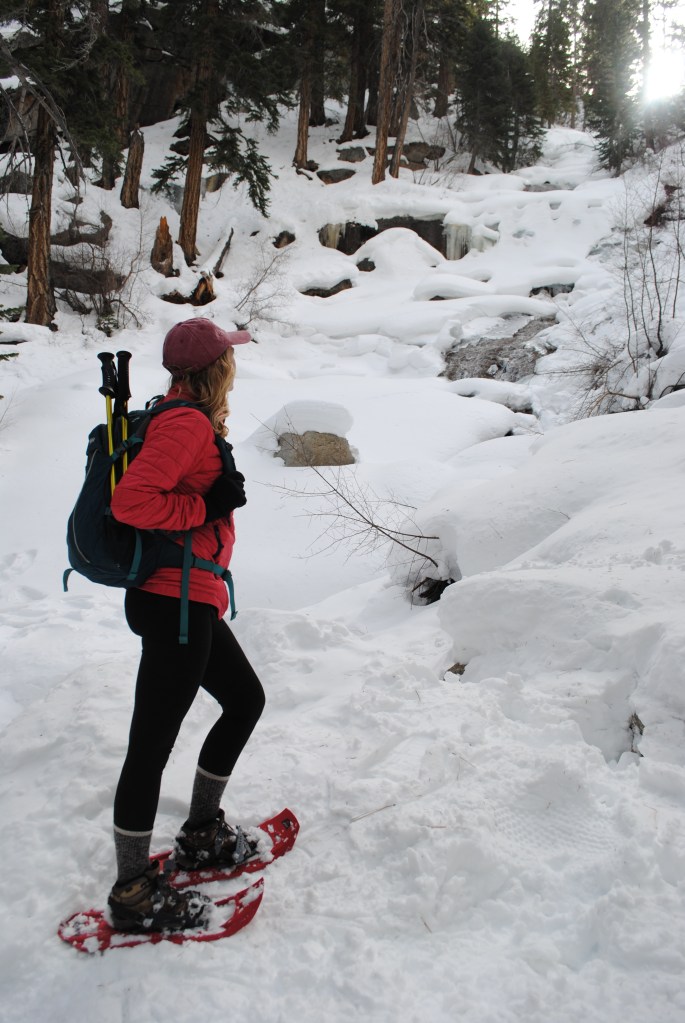 We ventured to the waterfall at the far end of the Portal and it was (almost) frozen over! Lots of beautiful icicles and snow bridges – it was so cool to see and hear the creek run underneath all that snow. If you make it up to the Portal, I would highly recommend checking out the waterfall!